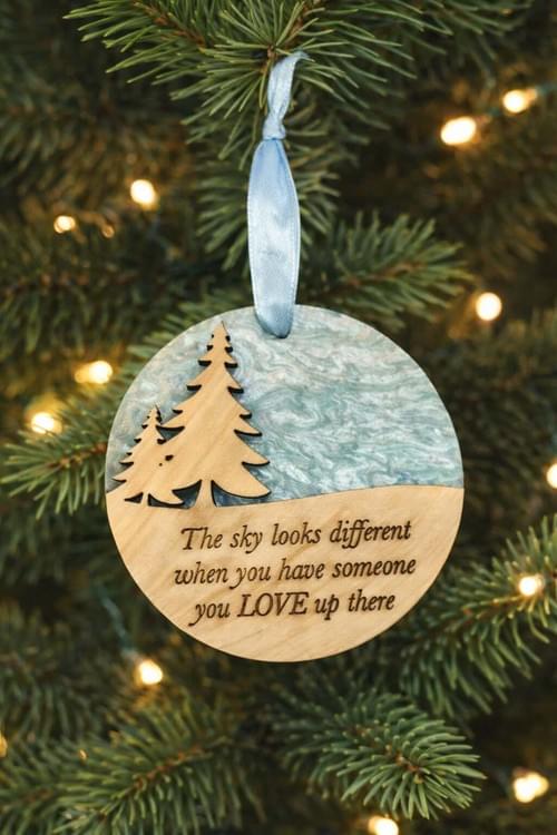 Honor and remember a loved one with this beautiful memorial ornament. Made from a combination of wood and acrylic and crafted locally, this keepsake is designed to be a gentle, lasting reminder of someone special.